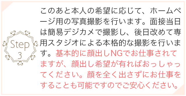 さらにお店に行かなくても面接が出来る『写メール面接』も行っていますよ!