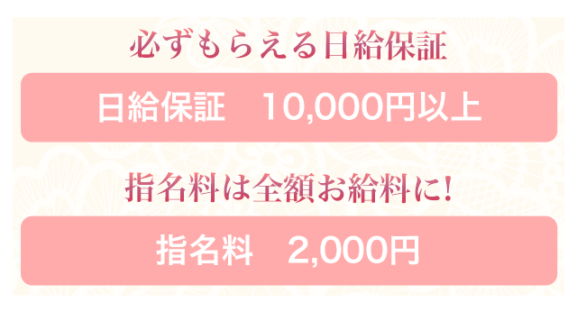 お客様からのご指名は2,000円頂いておりますが、それは全額女性のお給料に反映致します。
